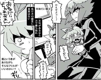 おおらかな姉兄上二十代様を覇王たまは内心尊敬してるけどヨハン草がきてからねにうえがへんになっちゃって(恋)十代ちゃんもヨハン草とたのしそうなのが覇王たまは気に入らないという本です。
