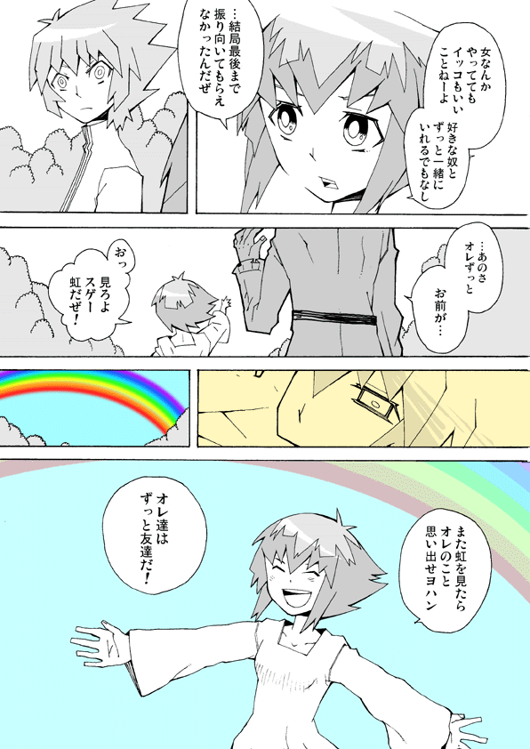 フリーダムなフリル王子は下町遊び仲間のがちゃ子がすきで、ああもうあいつはいつまで経ってもあほのこだし成長しないしがさつだしいつも小汚い格好で嫁の貰い手ねーなしょうがないオレがお后さまにしてやるぜとか思ってたとこ、ある日がちゃ子が虹竜を宿してることを知りエエーとなるんですよ
