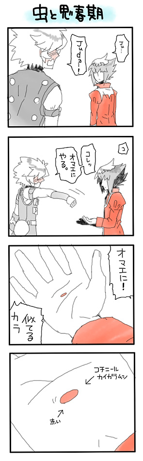 続きにまんがのほうの虫野郎×赤コートよっしゃさんです。