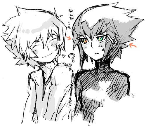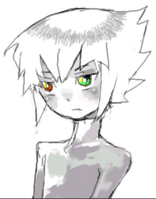 覚書きフリル似→エメラルド色の頭・灰色の目・目つきはフリルより鋭い(死に掛けてるせいかもしれんが)・男性声(CV:藤原/裕規)、フリルより声が低い・ブルーのジャケット似のシャツに黒いぼろぼろズボン・はだし萌・デュエルやらないのにデュエリストと間違えられてひどい目に遭う・がっちゃにすらフリルとまちがわれた(が、服がフリルじゃなかったので間違い発覚)